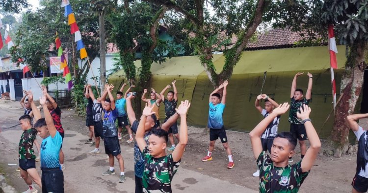 Pandeglang, 18 Oktober 2025 – Dalam rangka menjaga kebugaran fisik dan meningkatkan semangat kerja di lapangan, anggota Satuan Tugas (Satgas) TNI Manunggal Membangun Desa (TMMD) ke-126 Kodim 0601/Pandeglang melaksanakan kegiatan senam pagi bersama di sekitar lokasi posko TMMD, sebelum memulai aktivitas pembangunan di Desa Cikentrung, Kecamatan Cadasari, Kabupaten Pandeglang.