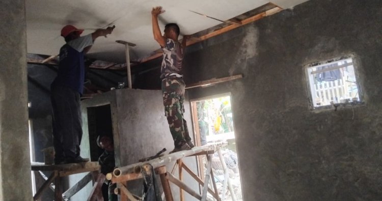 Terlihat dalam kegiatan tersebut, para anggota Satgas TMMD bersama warga bahu-membahu mengangkat dan memasang lembaran plafon di bagian dalam rumah yang sedang direhab. Proses pemasangan dilakukan dengan penuh ketelitian untuk memastikan hasil pekerjaan rapi, kuat, dan nyaman bagi penghuni rumah nantinya.