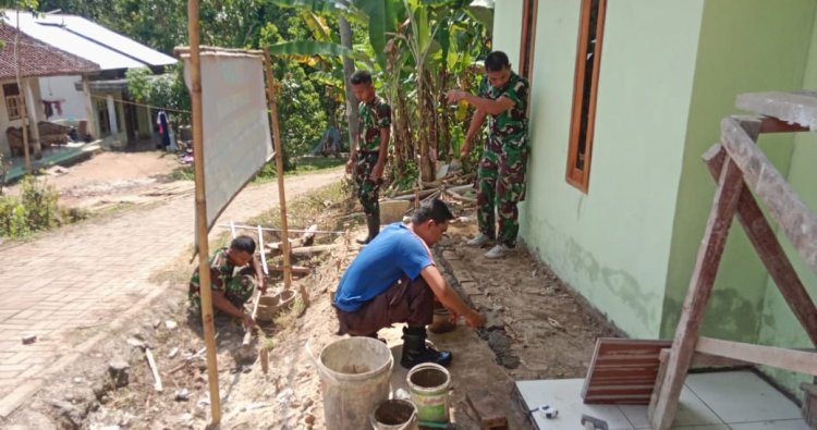 Pandeglang – Anggota Satgas TNI Manunggal Membangun Desa (TMMD) ke-126 Kodim 0601/Pandeglang terus melanjutkan kegiatan fisik berupa perehaban Rumah Tidak Layak Huni (RTLH) di Desa Cikeuntrung, Kecamatan Cadasari, Kabupaten Pandeglang. Pada pelaksanaan hari ini, personel Satgas bersama warga fokus melaksanakan pekerjaan lanjutan berupa pemasangan keramik di bagian teras rumah sebagai tahap akhir penyempurnaan bangunan.